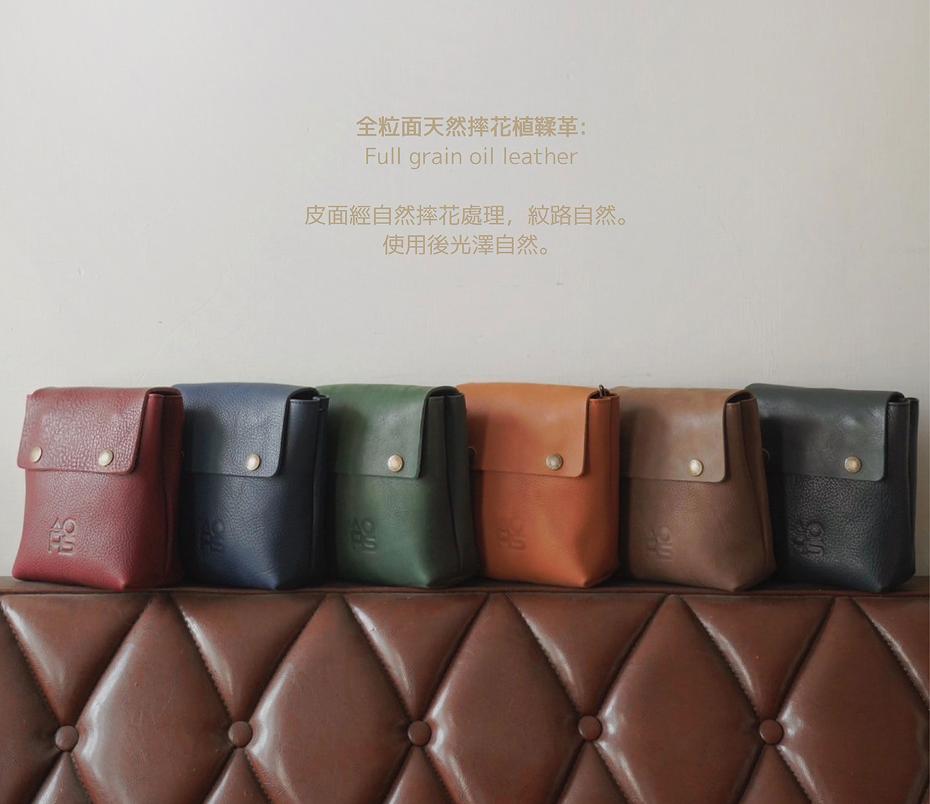皮面經自然摔花處理,紋路自然,使用後光澤自然。